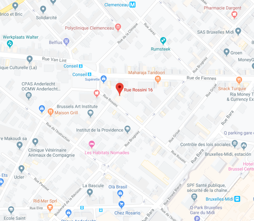 - Pour venir chez nous : Tram 81 – Arrêt Conseil, Métro ligne 2 et 6 – Arrêt Clémenceau, Bus 46 – Arrêt Clémenceau, Train : Gare de Bruxelles-Midi
